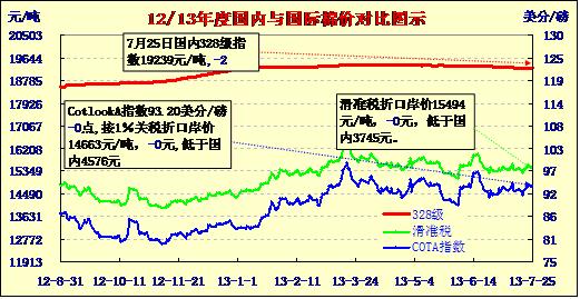 國(guó)內(nèi)外棉價(jià)對(duì)比圖表(13-7-25)