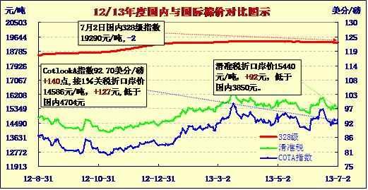 國內(nèi)外棉價(jià)對(duì)比圖表(13-7-2)