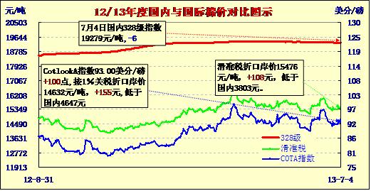 國(guó)內(nèi)外棉價(jià)對(duì)比圖表(13-7-4)