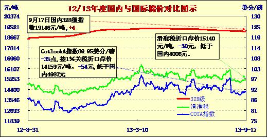 國(guó)內(nèi)外棉價(jià)對(duì)比圖表(09-17)