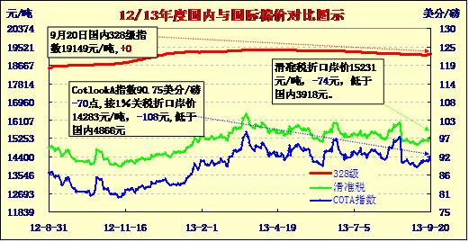 國(guó)內(nèi)外棉價(jià)對(duì)比圖表(09-19)
