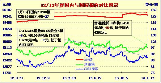 國內(nèi)外棉價對比圖表(01-13)