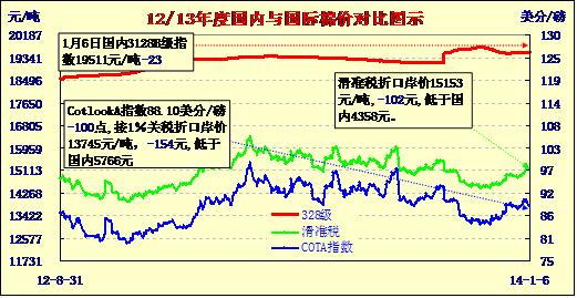 國內(nèi)外棉價對比圖表(01-06)