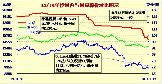 國(guó)內(nèi)外棉價(jià)對(duì)比圖表(10-13)