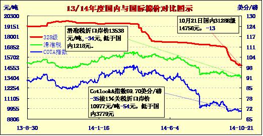 國內(nèi)外棉價(jià)對比圖表(10-21)