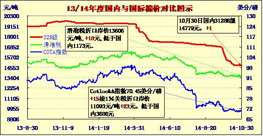 國(guó)內(nèi)外棉價(jià)對(duì)比圖表(10-30)