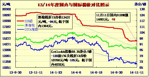 國內(nèi)外棉價(jià)對(duì)比圖表(11-11)