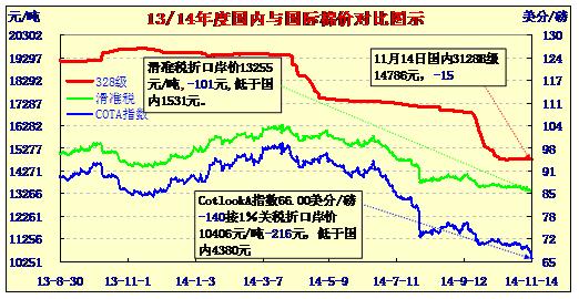 國內(nèi)外棉價(jià)對(duì)比圖表——外棉接近萬元(11-14)