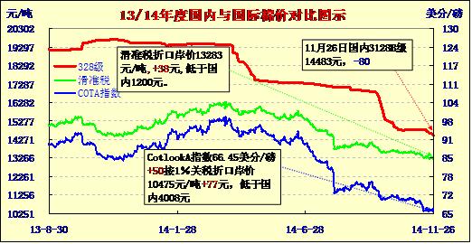國(guó)內(nèi)外棉價(jià)對(duì)比圖表(11-26)