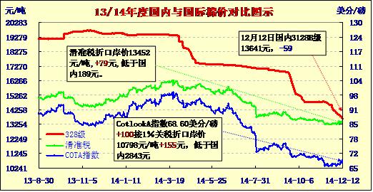國內(nèi)外棉價(jià)對(duì)比圖表——滑準(zhǔn)價(jià)同步(12-12)