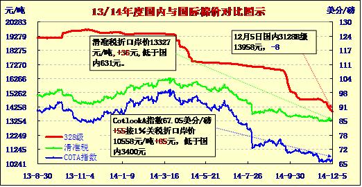 國(guó)內(nèi)外棉價(jià)對(duì)比圖表(12-05)