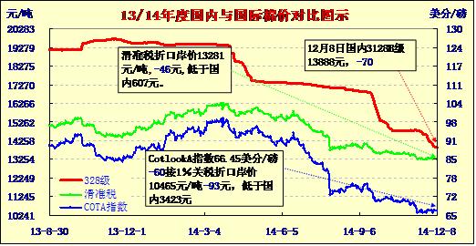 國(guó)內(nèi)外棉價(jià)對(duì)比圖表(12-08)