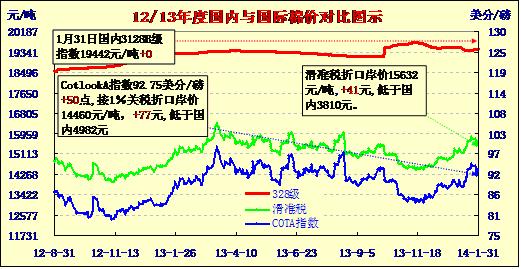 國內(nèi)外棉價對比圖表(01-31)
