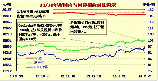 國內(nèi)外棉價對比圖表(02-26)
