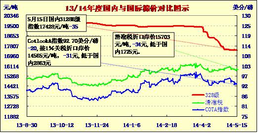 國(guó)內(nèi)外棉價(jià)對(duì)比圖表(05-15)