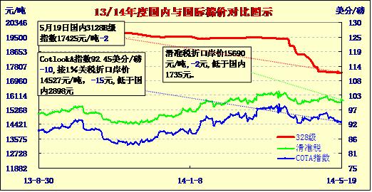 國內(nèi)外棉價對比圖表(05-19)