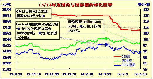 國內(nèi)外棉價對比圖表(06-13)
