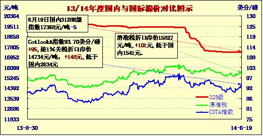 國(guó)內(nèi)外棉價(jià)對(duì)比圖表(06-19)