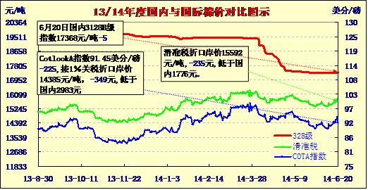 國內(nèi)外棉價(jià)對比圖表(06-20)