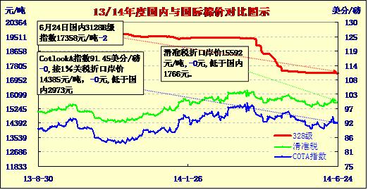國內(nèi)外棉價(jià)對(duì)比圖表(06-24)
