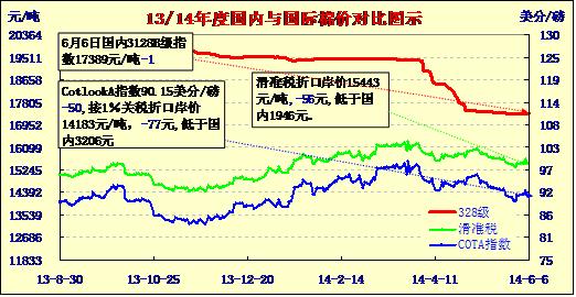 國(guó)內(nèi)外棉價(jià)對(duì)比圖表(06-06)