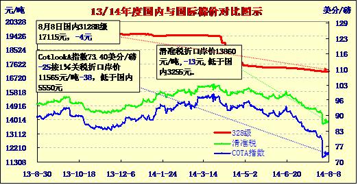 錦橋紡織網(wǎng)—資訊頻道> 棉花信息> cotlook>正文 國內(nèi)外棉價對比圖表(08-08)