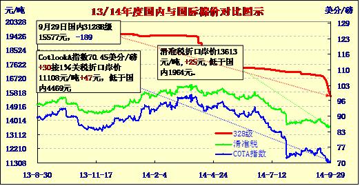 國(guó)內(nèi)外棉價(jià)對(duì)比圖表(09-29)