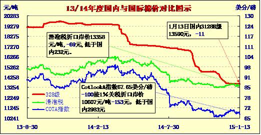 國內(nèi)外棉價對比圖表(01-13)