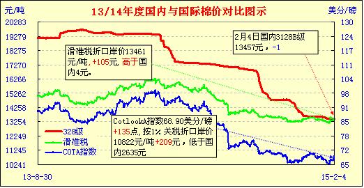錦橋紡織網(wǎng)—資訊頻道> 棉花信息> cotlook>正文 國內(nèi)外棉價對比圖表(02-04)
