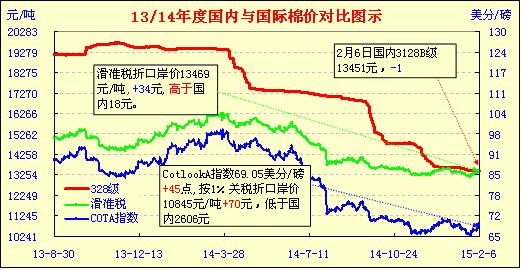 錦橋紡織網(wǎng)—資訊頻道> 棉花信息> cotlook>正文 國(guó)內(nèi)外棉價(jià)對(duì)比圖表(02-06)