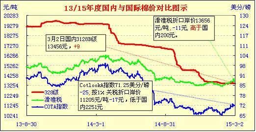 國(guó)內(nèi)外棉價(jià)對(duì)比圖表(03-02)