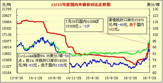 國(guó)內(nèi)外棉價(jià)對(duì)比圖表(07-29)