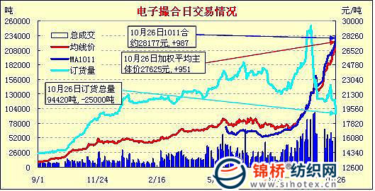 錦橋紡織網(wǎng)—資訊頻道> 棉花信息> 電子撮合>正文 電子撮合大幅高開(kāi)減倉(cāng)高位整理(10-26)