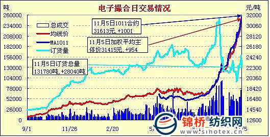 錦橋紡織網(wǎng)—資訊頻道> 棉花信息> 電子撮合>正文 電子撮合大幅高開窄幅收陽減倉大漲(11-5)