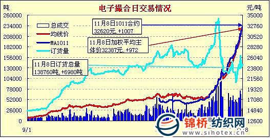 錦橋紡織網(wǎng)—資訊頻道> 棉花信息> 電子撮合>正文 電子撮合高開漲停大漲千元遠(yuǎn)期合約增倉(11-8)