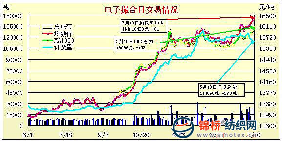 錦橋紡織網(wǎng)—資訊頻道> 棉花信息> 電子撮合>正文 電子撮合增倉(cāng)放量強(qiáng)勢(shì)續(xù)漲(3-10)