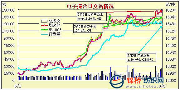 錦橋紡織網(wǎng)—資訊頻道> 棉花信息> 電子撮合>正文 電子撮合中幅續(xù)漲高位減倉(cāng)整理(3-5)