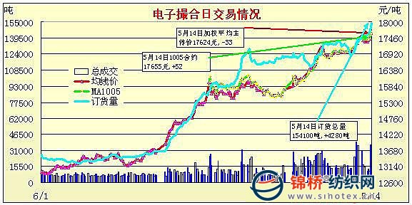 錦橋紡織網(wǎng)—資訊頻道> 棉花信息> 電子撮合>正文 電子撮合縮量轉(zhuǎn)倉中幅續(xù)漲(5-14)