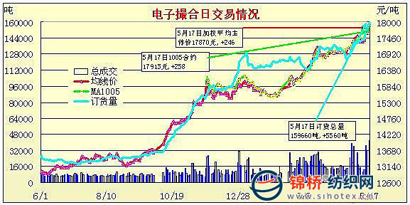 電子撮合放量大漲逼近每噸1.8萬元(5-17)