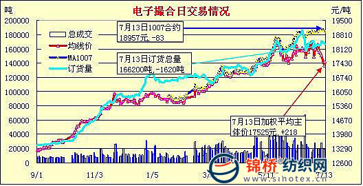 錦橋紡織網(wǎng)—資訊頻道> 棉花信息> 電子撮合>正文 電子撮合縮量減倉(cāng)跌幅加大(7-13)