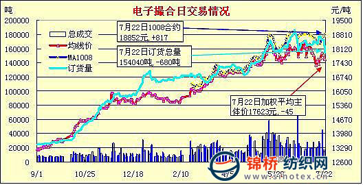 錦橋紡織網(wǎng)—資訊頻道> 棉花信息> 電子撮合>正文 電子撮合低開(kāi)小陽(yáng)近強(qiáng)遠(yuǎn)弱(7-22)