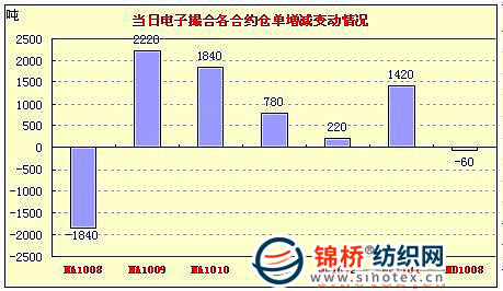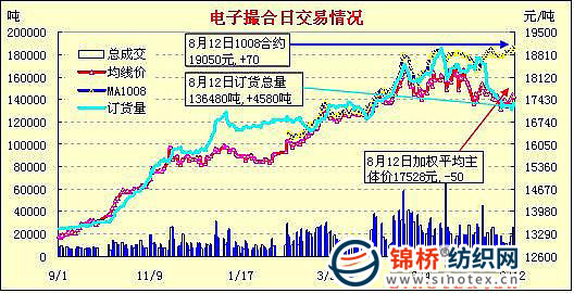 錦橋紡織網(wǎng)—資訊頻道> 棉花信息> 電子撮合>正文 電子撮合近強遠弱8月合約減倉站上1.9萬元遠期合約增倉(8-12)