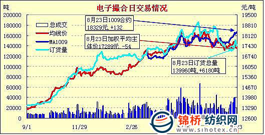 錦橋紡織網(wǎng)—資訊頻道> 棉花信息> 電子撮合>正文 電子撮合增倉反彈中幅上漲8月合約交易終止(8-23)