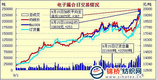 錦橋紡織網(wǎng)—資訊頻道> 棉花信息> 電子撮合>正文 電子撮合持續(xù)大幅飚漲近期合約高收2萬(9-15)