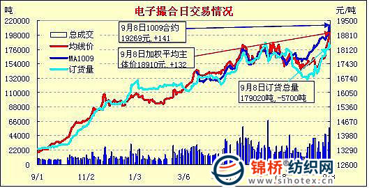 錦橋紡織網(wǎng)—資訊頻道> 棉花信息> 電子撮合>正文 電子撮合9月首度大幅減倉繼續(xù)飚漲近期合約均破萬九(9-8)