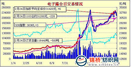 錦橋紡織網(wǎng)—資訊頻道> 棉花信息> 電子撮合>正文 電子撮合高開低走漲跌互現(xiàn)(2-24)