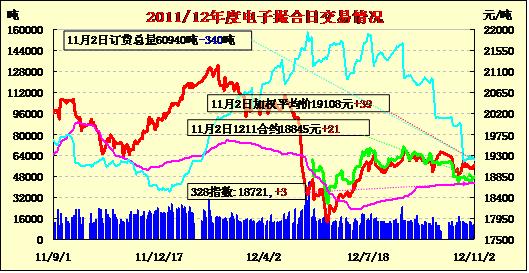 11月2日撮合市場量增倉減,漲跌互現(xiàn)。各合同全線高開,日內(nèi)窄幅震蕩,終盤漲跌互現(xiàn)。當(dāng)日MA1301和MA1304合同一改上一交易日的大幅上漲形勢轉(zhuǎn)為跌勢;其他合同分別上漲19-24元/噸不等。交易總成交11140噸,較上一交易日增860噸,訂貨量減少340噸,累計(jì)訂貨60940噸。中美宏觀經(jīng)濟(jì)數(shù)據(jù)出現(xiàn)回暖跡象,但縱觀當(dāng)前下游需求問題依舊是疲弱難改,國內(nèi)棉價(jià)雖有收儲價(jià)支撐,卻承壓于全球的高庫存,所以近期看棉價(jià)向上反彈動能較為乏力。