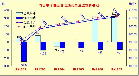 2月21日,全國棉花交易市場商品棉電子撮合交易成交15350噸,較上一日減少40噸,訂貨量增加660噸,累計訂貨93760噸。今日撮合各合同全部低開,前三個合同盤中震蕩走低,近月合同臨近交割日,跌幅加大;后三個月合同震蕩走高,但是缺乏支撐,尾盤依舊收低。近月MA1202合同收于19305元,跌95元,主力MA1205合同收于20790元,漲30元;盤內最低價為MA1202合同收市價19300元,最高價為MA1207合同盤中價21100元;當日成交量略有減少,訂貨量增加。