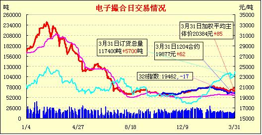 3月31日,全國棉花交易市場商品棉撮合交易成交16940噸,較上一日增加2520噸,訂貨量增加5700噸,累計訂貨量117400噸。今日撮合除近月合同低開外,其他合約均高開,盤中震蕩上行,終盤全線收漲;MA1208合同漲幅149元為當日收市漲幅最大合同,MA1205合同漲幅77元為當日收市漲幅最小合同,其他合同漲幅在107-148之間?;久嫔希諆M入最后一個交收日,美農(nóng)種植數(shù)據(jù)好于去年同期對國內(nèi)市場小幅提振,后期在沒有了收儲價支撐下,棉價將更多的把關(guān)注點轉(zhuǎn)向種植進度及天氣上面,全球的供需寬松壓力仍在。