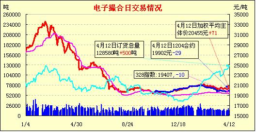 4月12日,全國棉花交易市場商品棉撮合交易成交13120噸,較上一日減少140噸,訂貨量增加500噸,累計訂貨量128580噸。今日撮合開盤高低不一,盤中窄幅盤整,盤終多數(shù)收跌;MA1205合同當日漲幅13元,延續(xù)近幾日的小強勢;其他合同跌幅在4-21元之間?;久嫔希m然歐債危機揮不去的影子繼續(xù)影響全球經(jīng)濟增速和消費需求,但調(diào)查顯示似乎并未對海外采購商在中國的采購計劃產(chǎn)生太大影響。目前市場看空的主要因素就是產(chǎn)業(yè)不景氣,不過近期國內(nèi)和國際市場在短期的供需上存在偏緊跡象。隨著植棉的陸續(xù)展開,后續(xù)市場將會把焦點更多的聚焦到天氣上。
